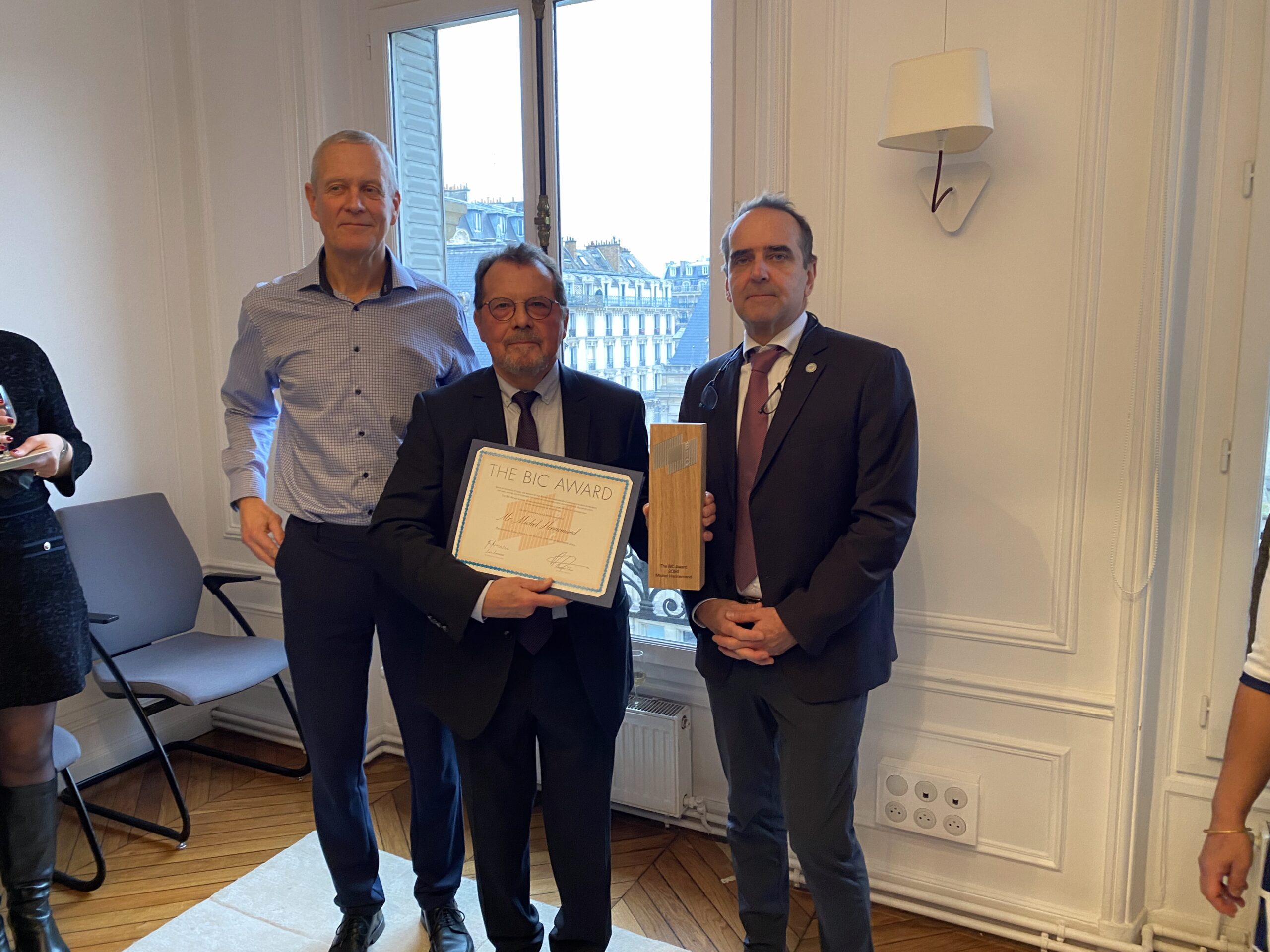 Vorrei ringraziare ancora una volta il BIC per questo onore, e in particolare Douglas Owen, Segretario Generale della nostra organizzazione, e Bertrand Geoffray. Persone senza le quali nulla sarebbe stato possibile.”